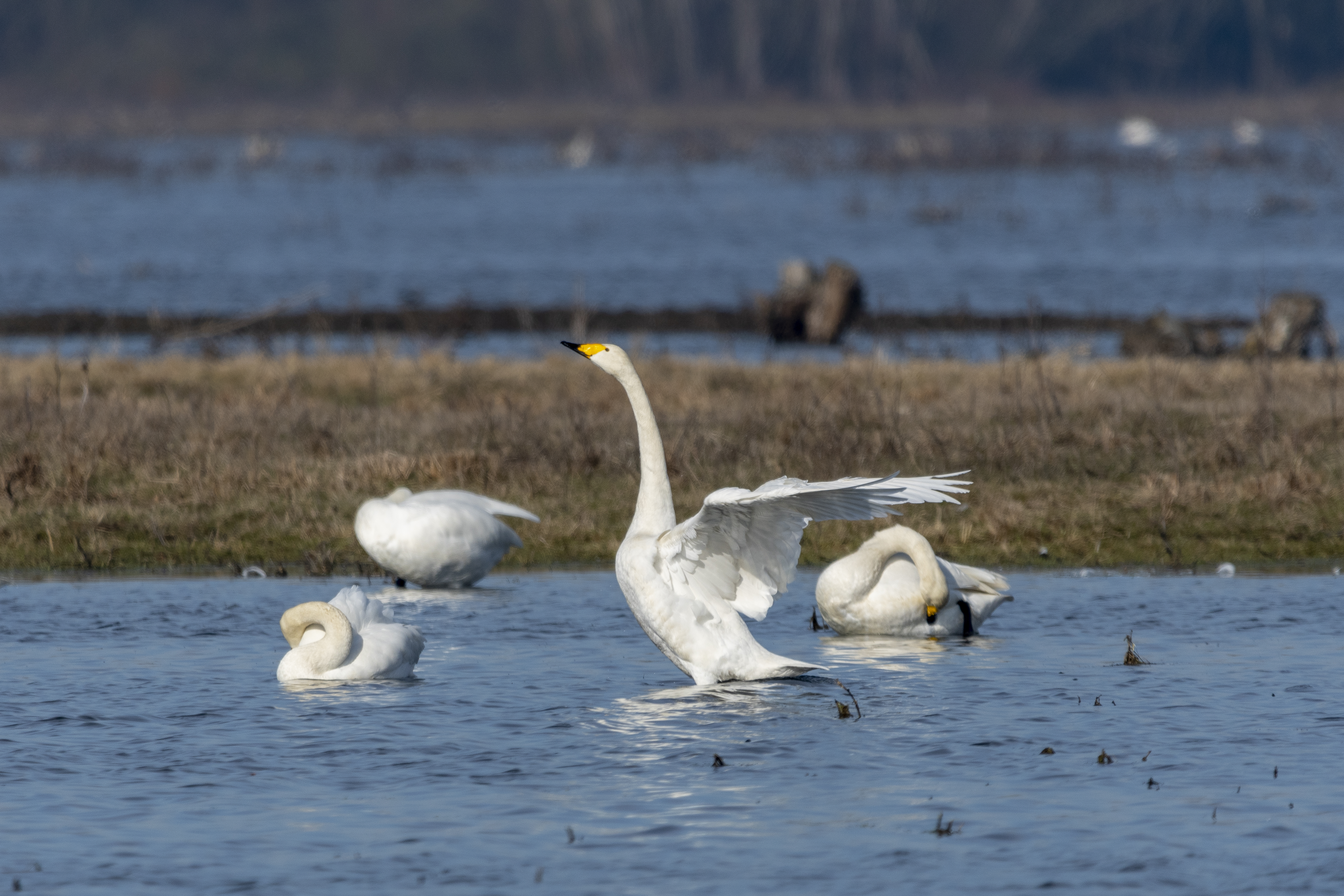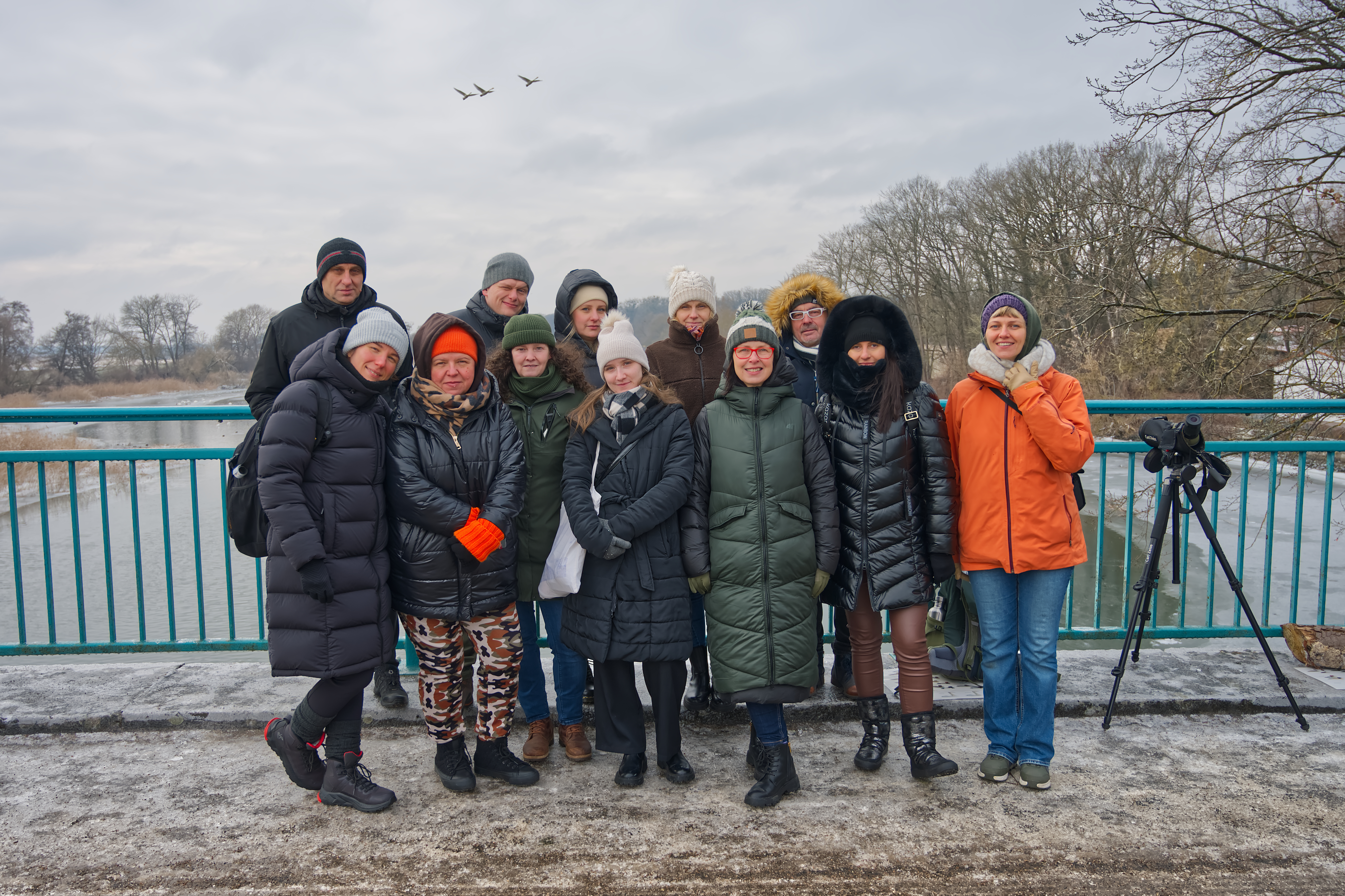 Na koniec wyjazdu odbył się spacer terenowy, podczas którego, korzystając ze specjalistycznych lornetek, uczestnicy mogli obserwować łabędzie krzykliwe w ich naturalnym środowisku — majestatycznie unoszące się nad wodą lub spoczywające na brzegu.